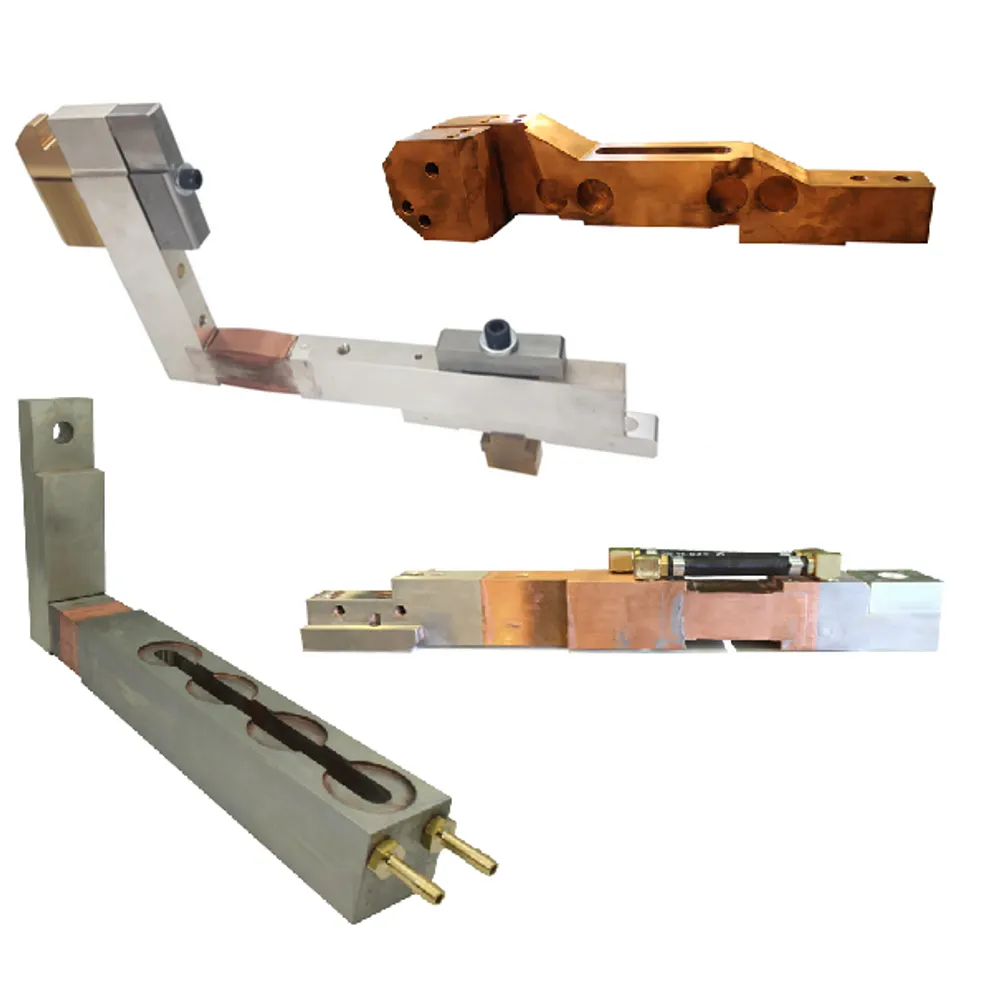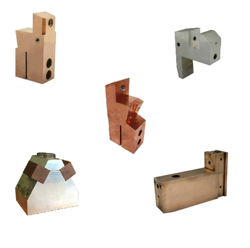 Electrodes are mounted on electrode holders and current bridges. The right copper alloy and the cooling system contribute to a long lifetime.